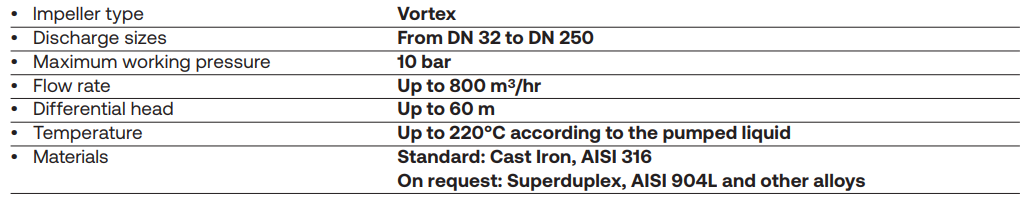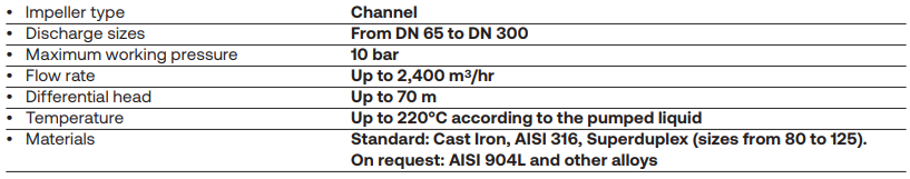 RC pumps feature a simple, modular design in accordance with ISO 5199, with discharge sizes from DN 32 to DN 250. Their fully recessed impeller provides a very large free passage (up to 150 mm), supported by a heavy-duty shaft and bearings. Designed for viscous liquids, slurries, fibrous fluids, and sludge, RC pumps are widely used in wastewater treatment, chemical processes, textile and tannery industries, pulp and paper, food and sugar industries, desalination plants, power stations, and steel industries.